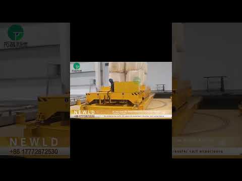 This is a rail transfer cart used in production workshops to transport goods. The cart is basically composed of two parts. The part close to the ground is powered by a safety sliding line,which powered by the sliding busbar on the right side of the pit. Its load capacity can reach up to 25 tons. There is also an embedded turntable that can rotate 360 degrees inside. Combined with the drag chain power supply trolley above, it can carry out workpieces, non-powered carts, etc., and carry out ferrying tasks for production raw materials.